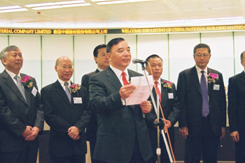 圖為宋志平在中國建材股份有限公司香港上市時發言