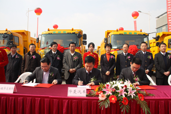 2011年3月2日上午,華菱公司隆重舉行了出口印尼150臺礦山自卸車的交接儀式,華菱公司董事長劉漢如還分別與華文國際董事長王民、印尼泛華總經理王偉雄在交車儀式上簽訂了三方合作意向書,與華文國際董事長王民簽訂了合作框架書,承諾將在印尼重卡市場及其他國際市場的開發上共同努力,進行深入緊密合作。(陳會松