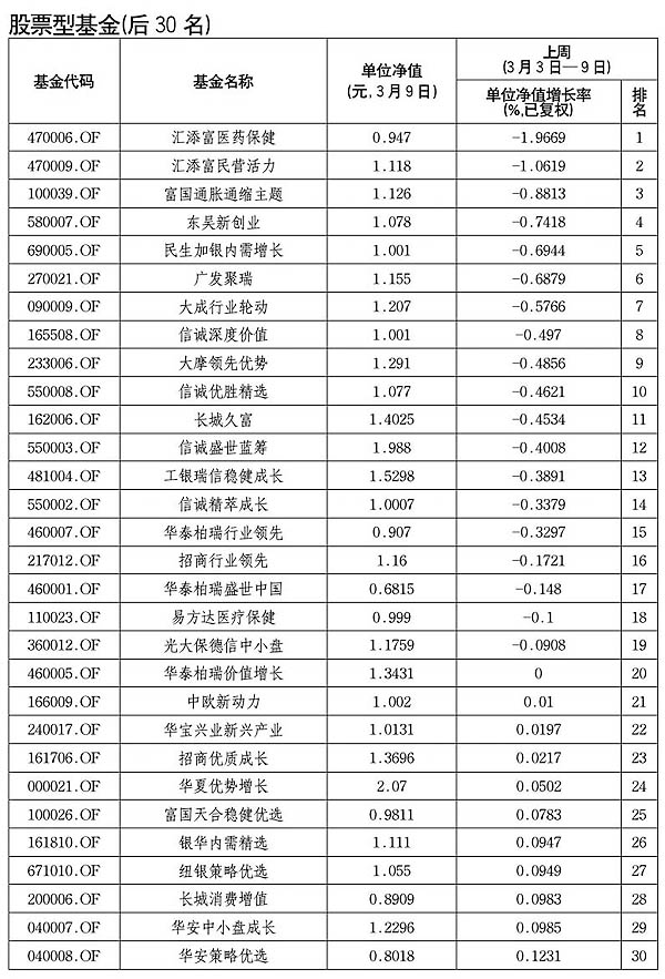 匯添富醫藥保健"榮登"本周最差收益股票型基金榜首
