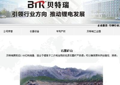 中國寶安子公司貝特瑞稱擁有近2.68億噸儲量、適合于鋰離子二次電池用的優質石墨礦產資源(來源:貝特瑞官方網站)