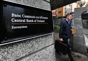 希臘首先爆發的歐洲主權債務危機以來,嚴重沖擊歐元穩定和歐元區經濟復蘇。去年11月,債臺高筑的愛爾蘭也不得不接受外部援助。圖為在愛爾蘭首都都柏林,一名男子離開愛爾蘭中央銀行。新華社記者