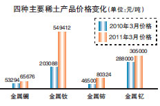 去年全國掀起的一場“稀土風暴”令我國稀土長期遭賤賣的局面終有改觀。今年以來,稀土平均價格已經比去年增長了1倍左右,出口價格更是增長近10倍。據業內預計,未來市場行情有望進一步推高。 來自上海有色網的數據顯示,市場上的主要稀土價格都已經較上年有大幅增長。而記者根據該網站昨日公布的主要稀土產品的當日價目表進行了測算,結果顯示,主要稀土產品的平均價格已經達到15萬美元/噸左右。 國家海關總署公布的最新統計數據則顯示,在過去幾個月里,我國稀土出口平均價格以每月近1萬美元/噸的漲勢向上攀升,2月單月就上漲了3.4萬美元/噸,均價突破10萬美元/噸,較去年飆漲9倍多。前兩個月,我國稀土出口量為7084噸,同比漲幅僅為0.3%,但出口額卻較上年同期增長568%。 中東有石油,中國有稀土。作為全球稀土出口主要國家,我國卻長期遭遇稀土被賤賣和混亂出口的局面。在充分意識到稀土資源的重要性之后,中國政府采取了一連串措施。去年7月我國對外宣布將減少稀土出口,當時稀土平均價格水平還維持在每噸約14405美元;9月,為整合我國稀土資源,國務院出臺了《關于促進企業兼并重組的意見》,稀土行業名列其中;而當年年底為規范稀土出口,財政部表示自2011年1月1日起,提高個別稀土產品的出口關稅。 業內專家分析說,環保部發布的《稀土工業污染物排放標準》今年10月1日正式實施后,環保成本提高將進一步推高稀土價格。中投顧問研究總監張硯霖指出,在目前上游原材料供應縮緊、價格持續堅挺的情況下,下游部分冶煉企業已經大量減產。且一旦環保機制啟動,大量作坊式的冶煉企業將被迫出局,稀土行業有望得到深度調整。在雙限的情況下,逐年減少的出口配額將促使生產企業將更多的力量轉向國內的推廣應用,形成良性的循環發展。