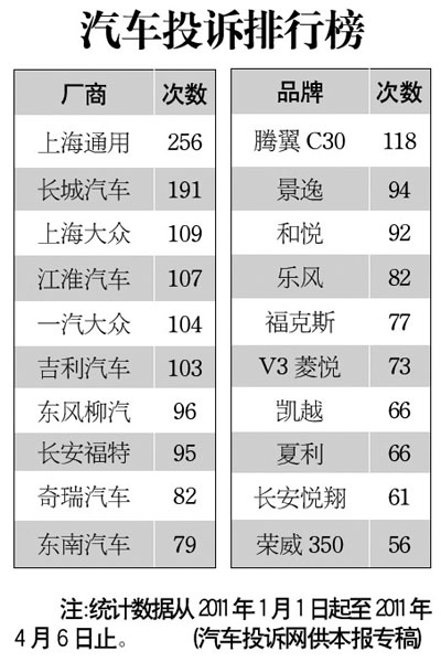 汽車投訴排行榜[2011-04-07]