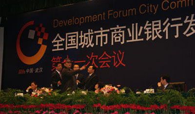在東湖賓館梅嶺禮堂內,以“嚴守風險底線,堅持科學發展”為主題的全國城商行第十一次發展論壇大會正在召開。該會由中國銀監會主辦漢口銀行承辦,參會代表悉數來自銀監會、各省銀監局和全國147家城商行的高管。