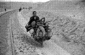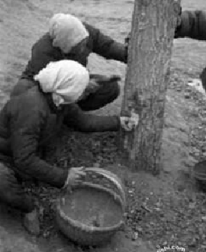 饑餓的災民在剝樹皮