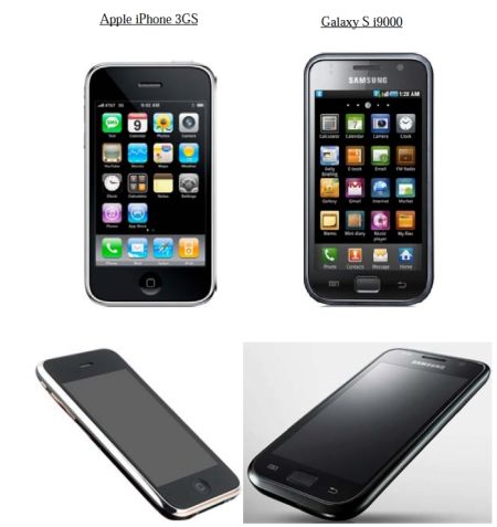 | 蘋果在訴狀中將自己的專利與三星手機進行對比 |