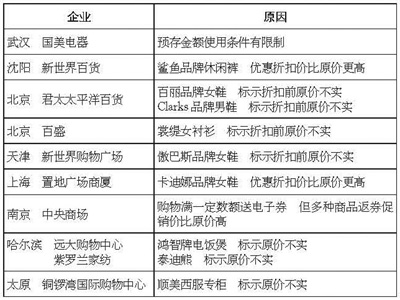 存在價格欺詐行為商貿企業一覽: