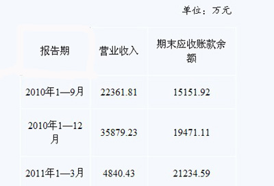 根據上述資料,劉先生算了一筆賬:截至2011年一季度末沃森生物賬齡1-6個月的應收賬款余額為21234.59×92%=19535.82萬元。假設一季度營業收入全部形成應收賬款,則2010年第四季度新形成的應收賬款為19535.82-4840.43=14695.39萬元。而沃森生物去年第四季度實現營業收入為13517.42萬元(35879.23-22361.81)!拔稚锶ツ甑谒募径刃掳l生的應收賬款竟然高于當季的營業收入,另人匪夷所思!眲⑾壬f。