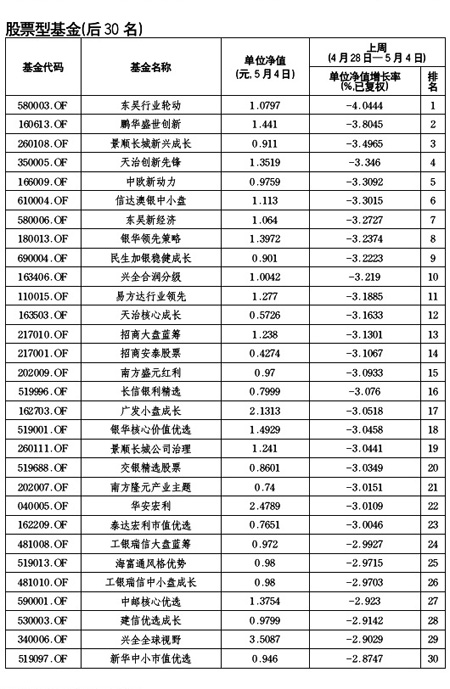 東吳基金管理有限公司旗下,2008年下半年上市的東吳行業輪動以-4.04%的凈值增長率成為本周(4月28日-5月4日)股票型基金收益倒數第一,其今年年漲幅為-8%。