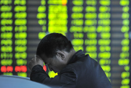 5月23日,股民在沈陽一證券交易大廳關注大盤走勢。 當日,滬深股市大幅下挫,上證綜指和深證成指分別以2774.57點和11742.19點報收,較前一交易日收盤大跌2.93%和3.44%! 受中國滬深股市下挫和希臘債務擔憂的影響,亞太地區主要股市普遍下跌。東京股市日經225種股票平均價格指數收于9460.63點,跌幅為1.52%。中國香港股市恒生指數收于22711.02點,跌幅為2.11%。澳大利亞悉尼股市主要股指收于4643點,跌幅為1.88%。