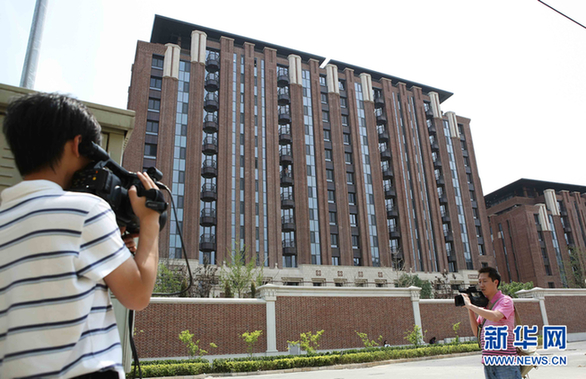 2011年5月25日北京出現單價30萬樓盤5月25日,媒體記者在北京東釣魚臺家園小區門前拍攝采訪。分析人士指出,在嚴厲調控之下,北京豪宅價格逆勢異常高漲,十分值得關注。新華社發(李方宇