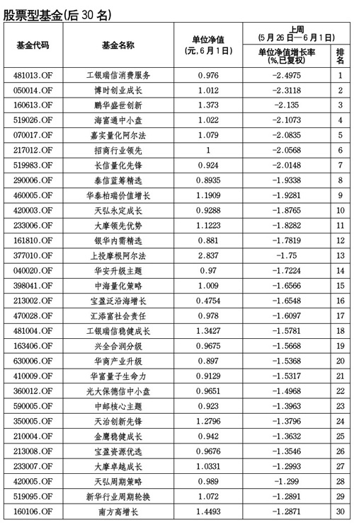 本周最差收益股票型基金排名
