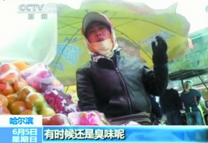 在哈藥總廠附近,即使在夏天,也仍然有人要戴口罩遮擋臭味。據央視視頻截圖