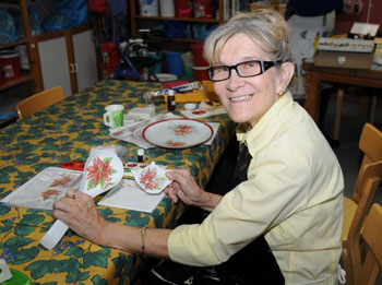 在赫爾辛基坎比老人服務與娛樂中心的手工藝室,一位老人在瓷器上繪制各種圖案。 |