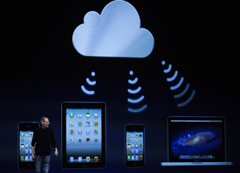 在舊金山舉行的蘋果全球開發者大會上,正在休病假的蘋果首席執行官史蒂夫·喬布斯親自登臺介紹了iCloud,并將它稱為蘋果的“下一個偉大遠見”。在用戶對使用蘋果iOS系統的移動設備進行充電時,系統會自動將用戶的文檔、購買的音樂、應用程序、照相簿和系統設置等進行云端備份,再自動推送到用戶的所有設備,用戶在蘋果的智能手機、平板電腦和臺式機上都可以同步獲得這些內容。每位用戶目前可以獲得5G的免費存儲空間,從蘋果購買的音樂、應用程序和電子書不占用免費空間,收費的大容量云存儲方案將在今年秋季推出。