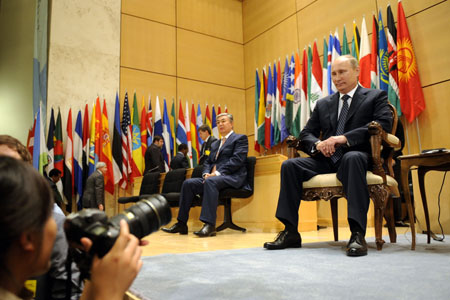 6月15日,在瑞士日內瓦萬國宮,俄羅斯總理普京出席第100屆國際勞工大會并發言。他在講話中指出,當前的俄羅斯經濟已恢復至危機前2/3的水平,明年或能達到危機前水平。他還稱,目前是全球第六大經濟體的俄羅斯制定了一個雄心勃勃的計劃,力爭10年內躋身全球五大經濟體行列。