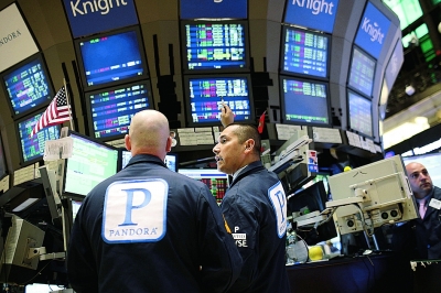 6月15日,美國紐約證券交易所的工作人員在交易大廳內忙碌。