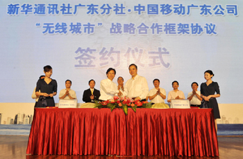 論壇當日,廣東省經信委與廣東移動簽署了“無線城市”戰略合作框架協議。為貫徹落實新華社總社與中國移動通信集團公司的戰略合作精神,新華社廣東分社與廣東移動也同期簽署了戰略合作協議,各方表示將進一步合力推進廣東“無線城市群”建設。與此同時,廣東移動“無線城市”也于當日正式發布。據悉,廣東移動的“無線城市”覆蓋全省,業務類別涵蓋無線政務、便民服務、商家優惠、掌上娛樂、企業應用、旅游資訊和時事新聞等多個領域,在試運營階段就已經吸引了社會各界的關注與體驗,今年前5個月累計訪問量已突破2000萬人次。