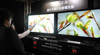 6月15日,東芝公司在日本東京總部展示了內置蓄電池的節能電視“REGZA 19P2”。 為迎接節電之夏,日本家電企業相繼推出節能家電,搶占夏季市場。新華社發(關賢一郎