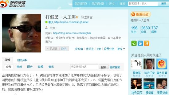 “中國打假第一人”王海近日在微博上指出(附:王海微博),由楊瀾代言的藍月亮洗衣液被檢測出含有致癌物質熒光增白劑,并且出具了相關的檢測報告,引起了網友的極大關注。 昨日(6月23日),廣州藍月亮實業有限公司副總經理鄧崗對《每日經濟新聞》表示,國家的《QB/T2953-2008洗滌劑用熒光增白劑》的行業標準允許在洗滌劑中添加兩類熒光增白劑,而且美國、日本和歐盟等地都允許在衣物洗滌劑中使用。 中國洗滌用品工業協會針對此事發表的特別說明稱,行業標準所規定使用的熒光增白劑安全可靠,不會對人體和環境造成負面影響,同時可以改善和提高洗滌效果。