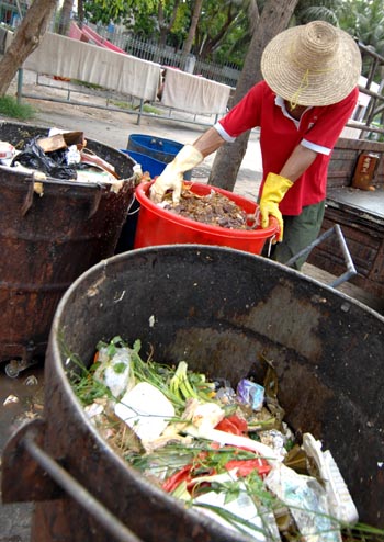 即使在廣州市天河區和番禺區的兩個餐廚垃圾生化處理示范點,這里的餐飲垃圾都是源自部分垃圾分類試點小區分離出來的廚余垃圾,并非來自酒樓賓館。李廷貴坦言,酒樓賓館不愿把餐飲垃圾交由環衛部門處理主要還是費用的問題。如果把餐飲垃圾交由環衛部門,他們需要按數量交納一定費用,目前,廣州市垃圾收運費為每桶(0.3立方米)7.5元,處理費每桶6元。而賣給收泔水的不僅省去這筆費用,還能賺錢,因此,多數酒樓賓館選擇了后者。換言之,在泔水處理的第一個環節,酒樓餐館為了方便和利益,為地溝油提煉提供了原料來源。