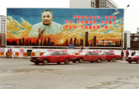 | 深圳經濟特區街頭懸掛大型標語牌,表達特區人民堅持改革開放的決心。(1993年攝)。記者 劉玉生/攝 |