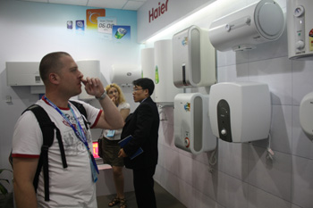 “防電墻”技術成為國際標準后,海爾熱水器就成了“安全”的代名詞。資料照片 |