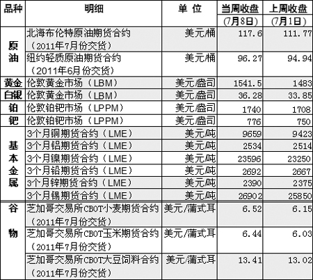 8日公布的美國就業數據顯示,6月份美國新增就業創下9個月最低,失業率為今年以來最高水平,顯示美國就業市場繼續惡化,導致油價下挫,但從全周來看仍然呈現漲勢。截至8日盤終,紐約市場8月交貨的輕質原油期貨價格收于每桶96.20美元,全周上漲1.33%。倫敦市場受北海油田出現減產消息影響,8日的布倫特油價跌幅受限,收于每桶118.33美元,全周上漲5.87%,與紐約油價價差進一步擴大到22美元。