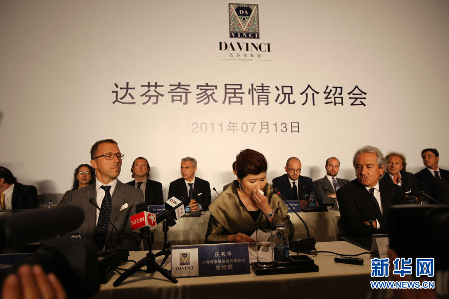 13日,“達芬奇”首度于北京召開新聞發布會,并在上海、廣州、杭州、重慶、成都、深圳等6地設立分會場進行同步直播,“達芬奇”欲再次強調自己的“意大利身份”時,卻因為一位消費者起身大聲質疑并摔門而去而引發騷動。隨后,“達芬奇”總經理潘莊秀華含淚痛哭,并間接承認其與東莞長豐公司有過三次合作。她還無意中說出,達芬奇旗下代理的美國品牌好萊塢系列產自東莞。