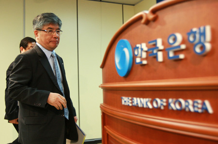 圖為7月14日,在韓國首爾,韓國銀行行長金仲秀出席新聞發布會。 韓國央行——韓國銀行當日宣布,將基準利率保持在3.25%不變。 韓國銀行金融貨幣委員會當天召開例會說,雖然韓國消費者價格指數連續六個月處于4%以上高位,但為了穩定物價,韓國央行上個月已上調了基準利率,韓國政府也出臺了一系列應對方案,因此,有必要對這些政策的效果進一步觀察,若連續兩個月上調基準利率將會給市場帶來負擔。