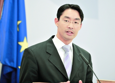 8月3日,在德國首都柏林,德國經濟部長勒斯勒爾在新聞發布會上向媒體介紹情況。