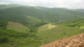 被“剃光頭”一樣砍伐的林地上,即將建設新的別墅群。記者 肖波 王文志 攝 |