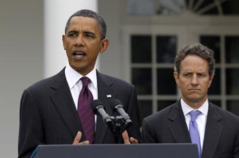 美國財政部長蓋特納8月7日發表聲明表示,他已經通知總統奧巴馬,不會辭去財長職務。隨后,白宮發言人卡尼發表聲明說,奧巴馬對蓋特納的決定表示歡迎。據透露,奧巴馬5日主動與蓋特納進行了談話,希望他能留任財長,以處理目前美國面臨的經濟困難。 這是2010年9月3日美國總統奧巴馬(左)和財政部長蓋特納在白宮出席活動的資料照片。新華社/路透 |