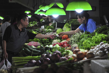 8月9日,沈陽市民在一家農貿市場選購蔬菜。新華社發(田衛濤攝) |