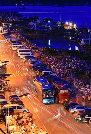 每當夜幕降臨,石浦漁港的夜排檔就成了中外游客大快朵頤的好去處。沈穎俊/攝 |