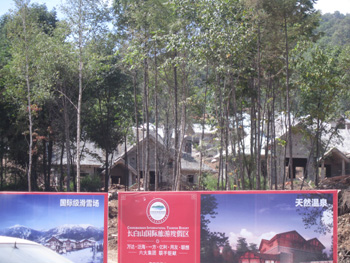 除了高爾夫球場和別墅群外,該項目還配套有大批豪華酒店,在長白山國際旅游度假區南區將建成9座星級酒店,這些高檔酒店群占地約1平方公里,一期將建設6個酒店,分別是六星級柏悅酒店、威斯汀酒店,五星級凱悅酒店、喜來登酒店,洲際四星級假日酒店和洲際公寓式酒店。記者走訪酒店建筑工地現場發現,在一期“長白山霞慕尼”別墅群對面,酒店群已初具雛形。