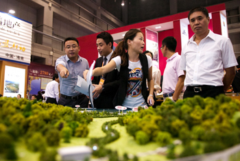 9月15日,參觀者在房展會上咨詢。 當日,2011北京秋季房地產展示交易會開幕。受限購政策影響,加之開發商降價幅度較小,購房者在選擇時觀望態度明顯。新華社發(白禹攝) |