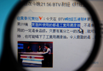 “到底有沒有用工業潤滑油,有沒有毒,我們光看也看不出來,所以就先不買了!惫鋰蕾u場的陳女士向記者表示,“最主要的還是擔心安全問題,是不是會影響人體的健康,對于食品安全問題,我寧可信其有,除非有監管部門的調查結果!