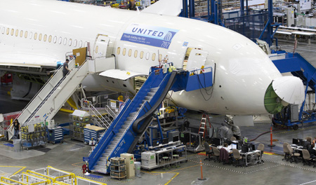 9月25日,波音公司員工在美國華盛頓州的工廠制造波音787“夢幻客機”。