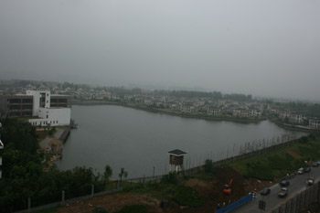 在知情人的帶領下,記者驅車進入這個小區發現,主干道兩旁花木扶疏,偶爾會發現一兩株名貴的樹種。連接著主干道,有各式小路曲徑通幽。穿過兩幢獨立別墅,一片碩大的湖泊展現在記者面前,足足有百余個足球場那么大。記者正欲拍照,一位物業人員便跑上來嚴厲喝止。