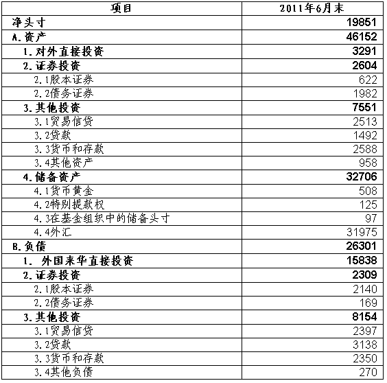 日前,國家外匯管理局公布了2011年6月末中國國際投資頭寸表。