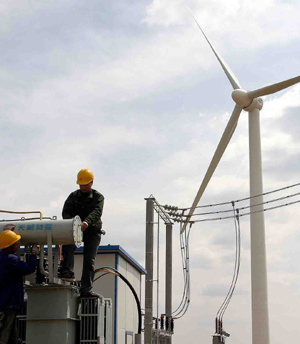 在美麗的壩上草原,高聳的風葉與藍天、白云、綠草融為一體。它不僅成為當地美麗的一景,更是輸送清潔能源的綠色基地。在圍場滿族蒙古族自治縣御道口牧場羊百順風電場,33臺風機已全部吊裝完畢,正在進行并網調試。據市發改委的工作人員介紹,該風電場裝機容量為4.95萬千瓦,3月初開工建設,9月中旬正式并網發電。并網發電后,年發電量約為1.2億千瓦時,與燃煤火電相比,每年可節約標煤4.17萬噸,減少粉塵7000噸、二氧化碳11.5萬噸、二氧化硫650噸。不僅如此,風電場建設還帶動了當地交通發展,為當地創造勞動用工近千人。