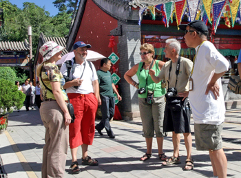 | 外國游客在游覽外八廟 |
