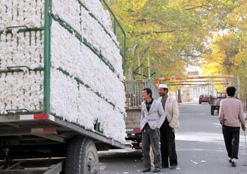 記者近日在阿瓦提縣通往周邊地區的主要出口看到,為了阻止縣里的棉花資源外流,在各鄉鎮通往其他縣市的主要路口,都設有關卡,出去的農用車輛必須接受檢查,如果運輸的是棉花,不繳費不許通行。
