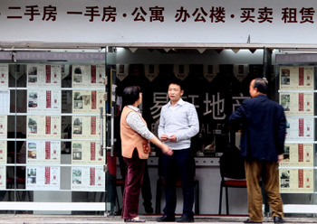 二手房市場可以為買主提供豐富的房源,但買主也要學習一些買房知識。圖為一些市民在一家房屋中介所前查看二手房信息。資料照片 |