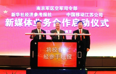 11月8日,南京軍區空軍通信系統、中國移動通信集團江蘇有限公司和新華社經濟參考報社,在南京舉行三方新媒體業務合作啟動儀式。