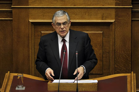 11月14日,在希臘首都雅典,希臘新總理帕帕季莫斯在議會發表就任聯合政府總理后的首次講話。