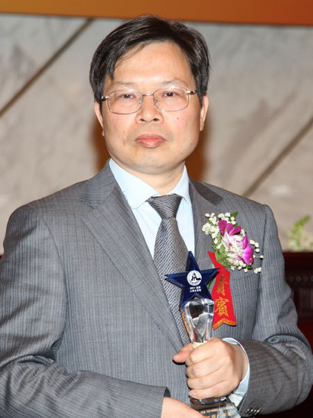 “2011綠色發展十大領軍人物、企業、城市”評選活動結束,頒獎典禮于2011年11月19日下午在人民大會堂舉行,上圖為浙江余姚市代表領獎。