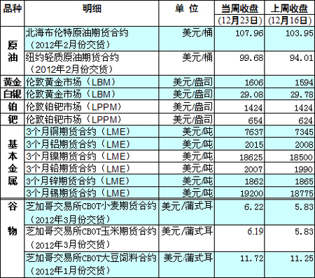 國際大宗商品期貨價格明細表[2011-12-26]