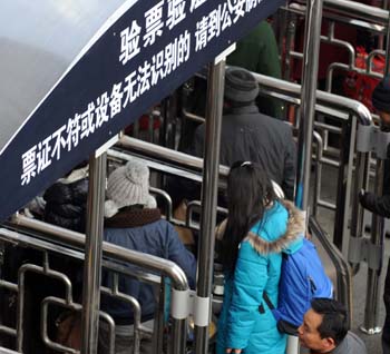 隨著客流高峰的日益臨近,上海鐵路部門仍在為應對大客流做準備。鐵路上海南站值班站長周忠杰說:“今天是春運第一天,客流量不算大,等客流高峰到來的時候,會面臨真正的考驗!